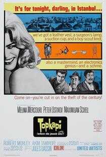 讲述了发生在伊斯坦布尔的Topkapi宫博物馆里的盗宝案…… 影片在土耳其和伊斯坦布尔宫廷的外景拍摄,令画面显得华美非常。片中有着令人难忘的角色和类似《不可能的任务》(Mission Imposible)那样的盗窃高手表演。总的来说,这部作品让人觉得丰富多彩和极具吸引力。 在六十年代,欧美影坛曾流行盗宝喜剧的风潮,朱尔斯·达辛在伊斯坦弩尔和希腊拍摄的这部影片是其中代表作之一。 片中角色鲜活有趣,演员之间的互动处处擦出火花,加上巧妙的盗宝过程,造成一流的娱乐效果。剧情描述梅莲娜·梅尔库丽跟她的情人马克西米利安·谢尔,想偷取土耳其博物馆珍藏的无价之宝短剑,由于守卫森严,他们只好雇用一群犯罪专家进行盗宝计划。 不料负责开车的小老千彼得·乌斯蒂诺夫被警方误以为是恐怖分子之一,威胁他作警方内应,因此,一个计划周详的抢劫平添了不可测的变数。第37届奥斯卡金像奖最佳男配角彼得·乌斯蒂诺夫- 上一篇:Chasing Shakespeare